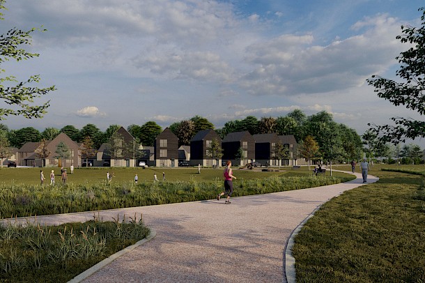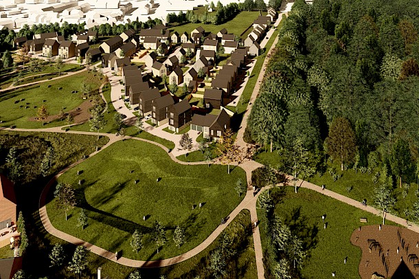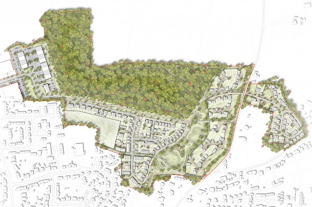 Proposals would provide a mix of high-quality housing, including affordable homes, in a sustainable location to help meet the supply needs of the district. In addition, new commercial space would provide employment opportunities to the locality alongside community benefits with a new medical centre, extension to the school playing field and the Ancient Woodland, areas of public open space and pedestrian and cycle routes.